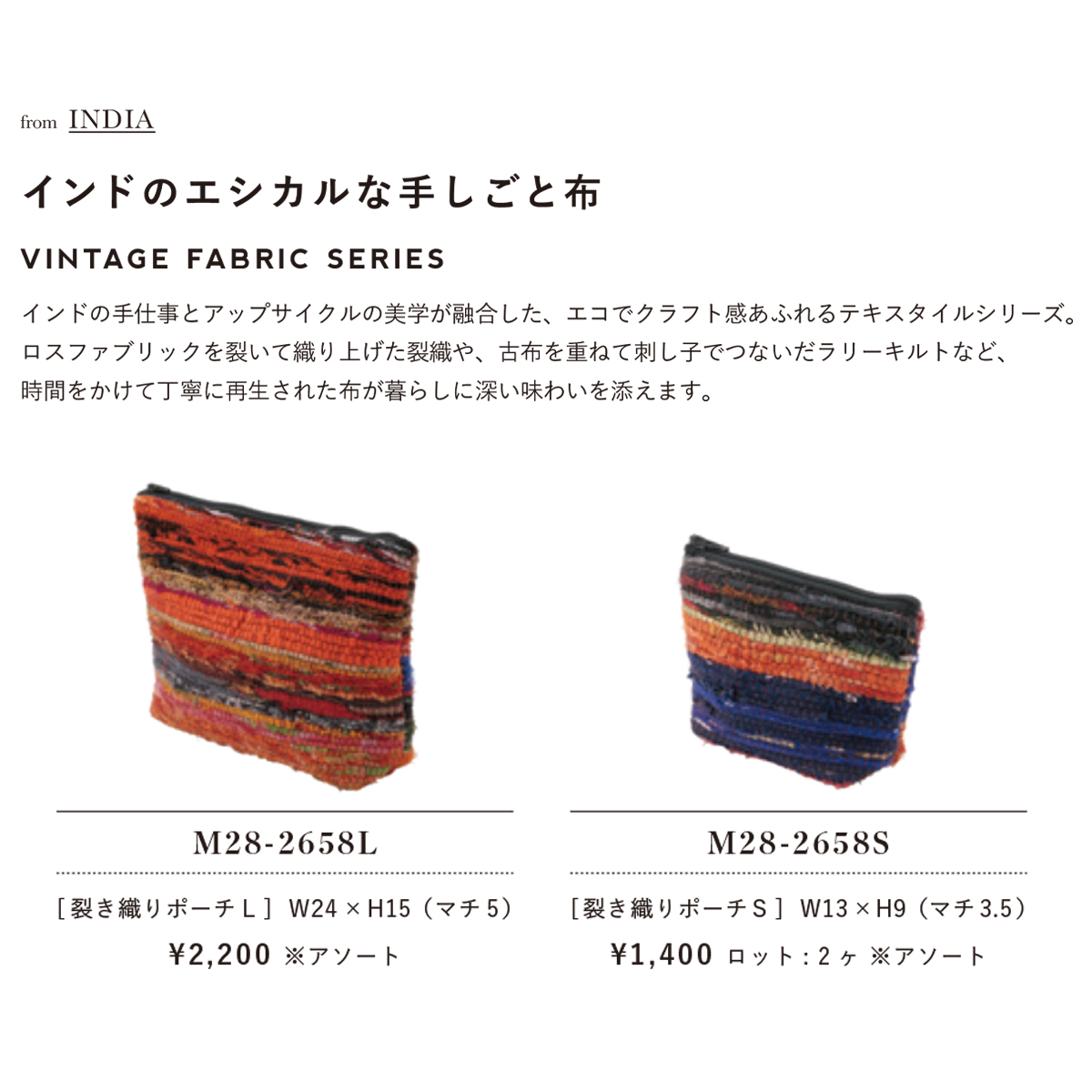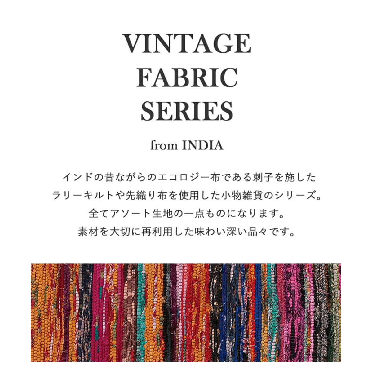 インドの昔ながらのエコロジー布である刺子を施したラリーキルトや先織り布を使用した小物雑貨のシリーズ。