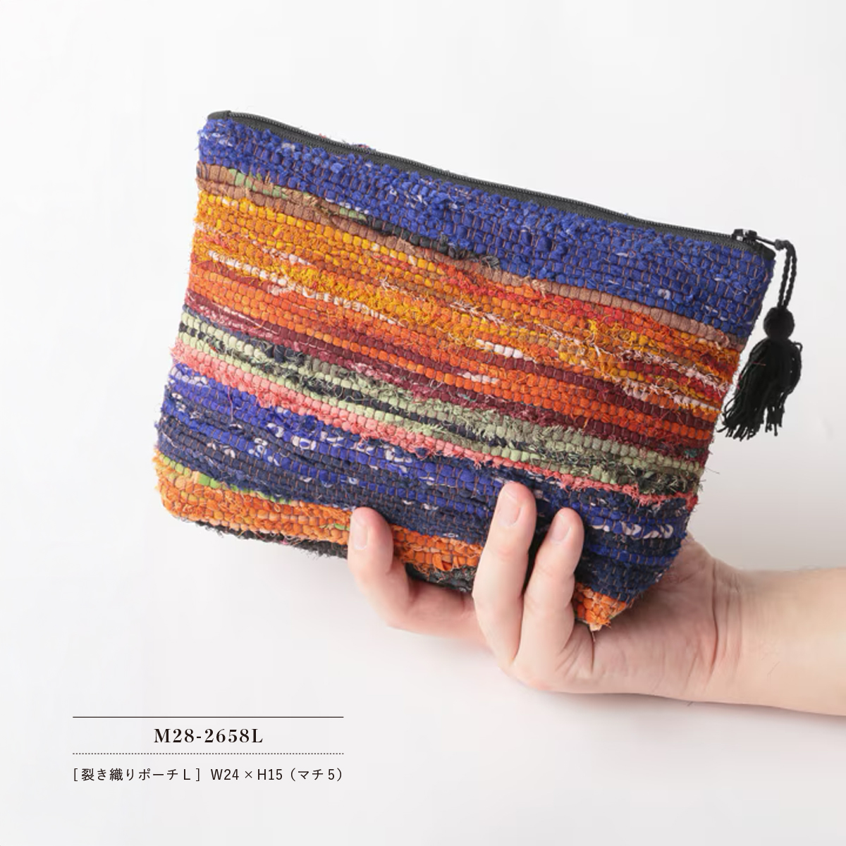 裂き織りポーチL&Sサイズ 小物入れ ハンドメイド