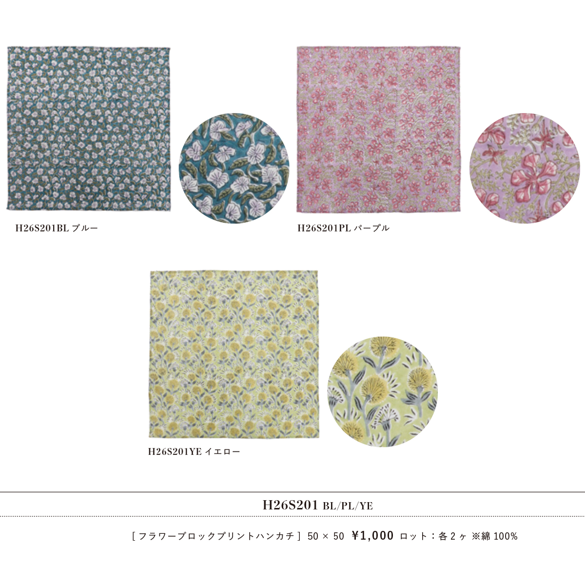 フラワーブロックプリントハンカチ レディース 母の日 ギフト