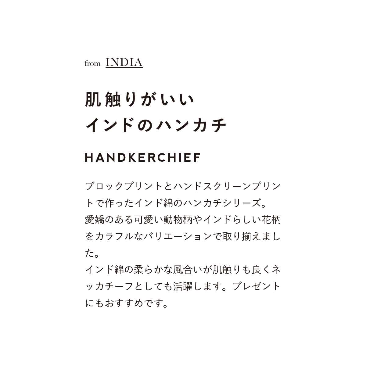 インドのブロックプリント柄を使用した、コットン100%のハンカチです。