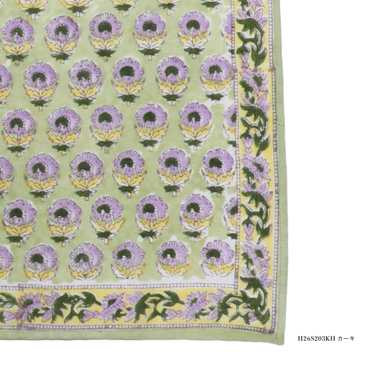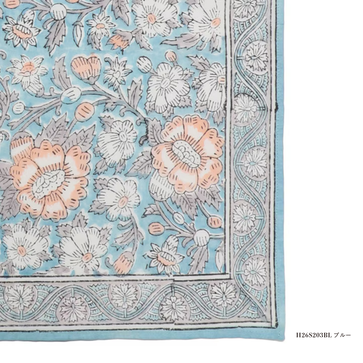 丈夫でハリのあるインドコットン素材。プレゼントにもおすすめです。ブロックプリントは熟練の職人が木版を使って丁寧に布にインクを乗せる作業を繰り返して仕上げられます。カスレや版の微妙な重なりの違いにより独特のニュアンスが生まれる、伝統的な手仕事ならではの味がある魅力的なテキスタイルです。