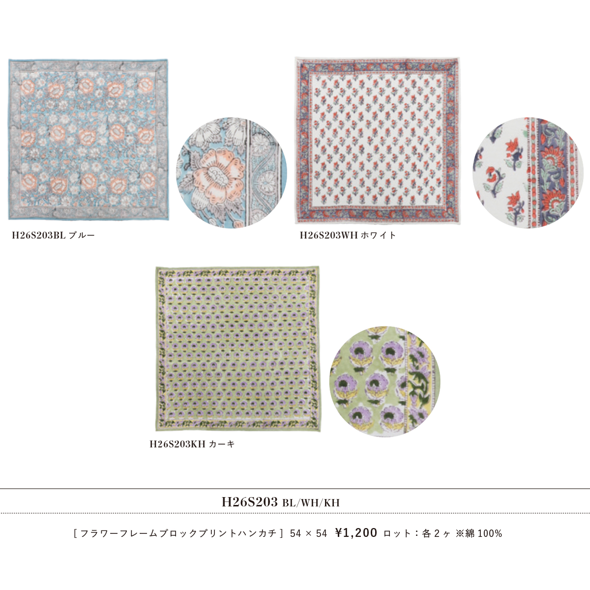 フラワーフレームブロックプリントハンカチ レディース 母の日 ギフト