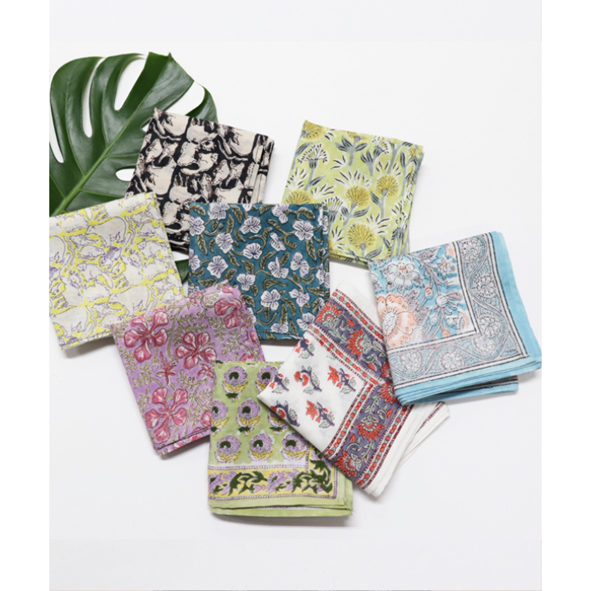 インドのブロックプリント柄を使用した、コットン100%のハンカチです。
