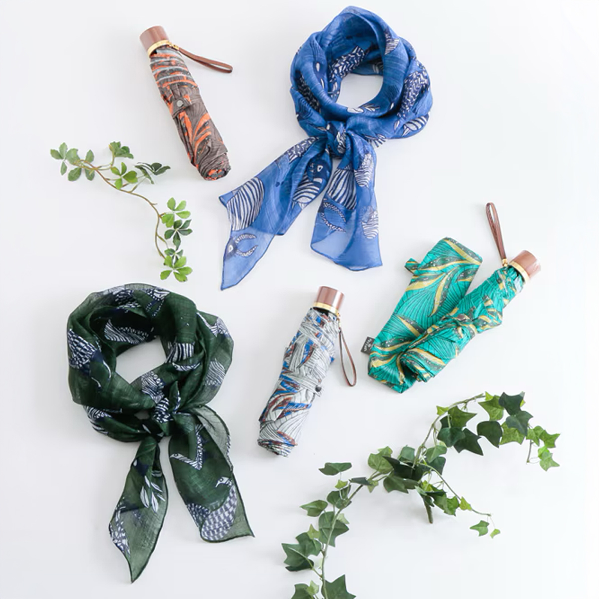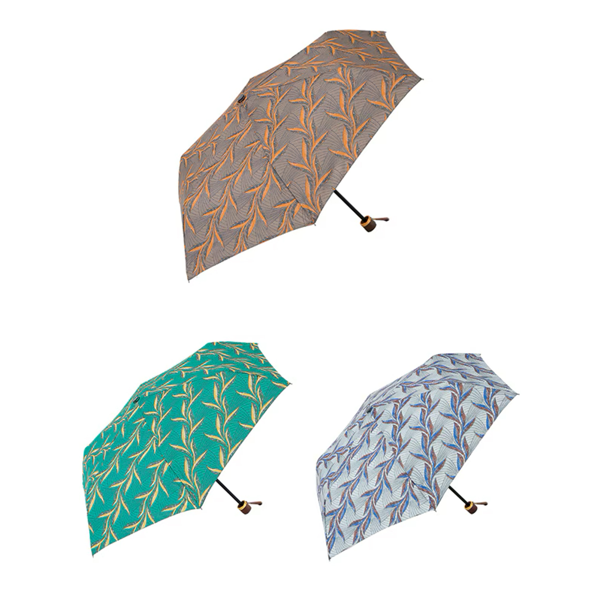 柄の部分は手になじみやすい天然木を使用し、晴雨兼用でお使いいただけるようにUVカット加工を施しています。重量約250g。親骨本数6本/3段折り。開閉は手開き式になります。日本洋傘振興協議会が定めた国内唯一かつ海外においても他に類を見ない洋傘の品質基準「JUPA基準」をクリアした傘となりますので、安心してご利用いただけます。