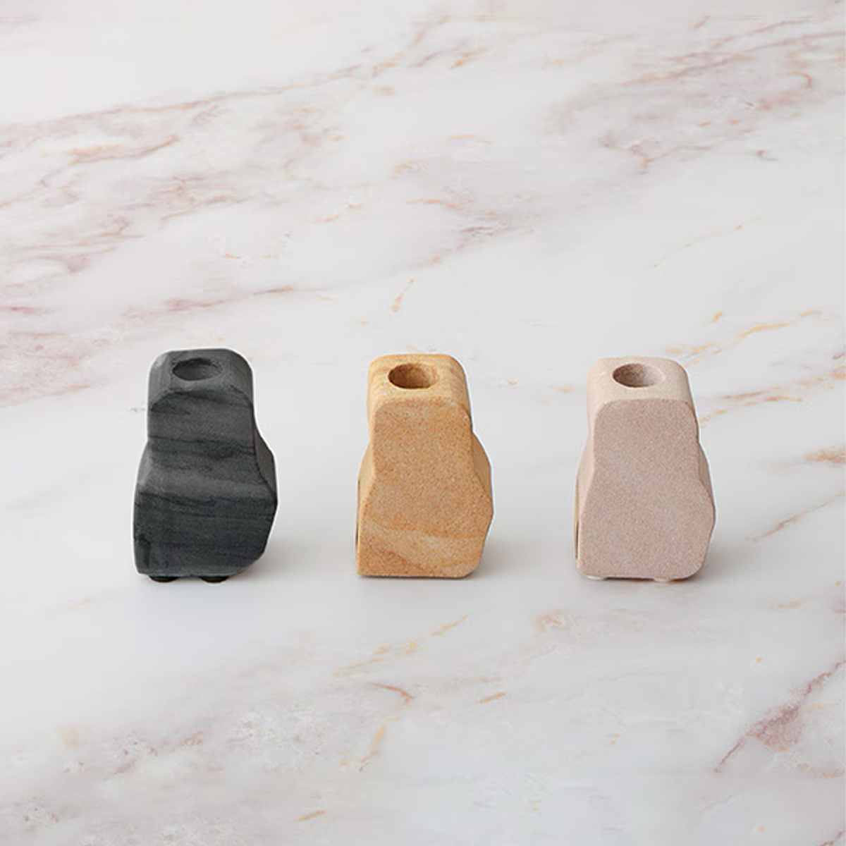 ストーンホルダーはお香やパロサント(香木)、ペンなどのスティックを立ててお使いいただけます。ガラスの試験管を入れて一輪挿しにしたり、ドライフラワーや多肉植物を飾っても素敵です。自然の色味が生きた優しい雰囲気でどんなテイストのお部屋にも馴染みやすいデザインになっています。色味や柄の出方は個体差がございます。グレー:ブラック系の光沢がある仕上がりに変更になりました。