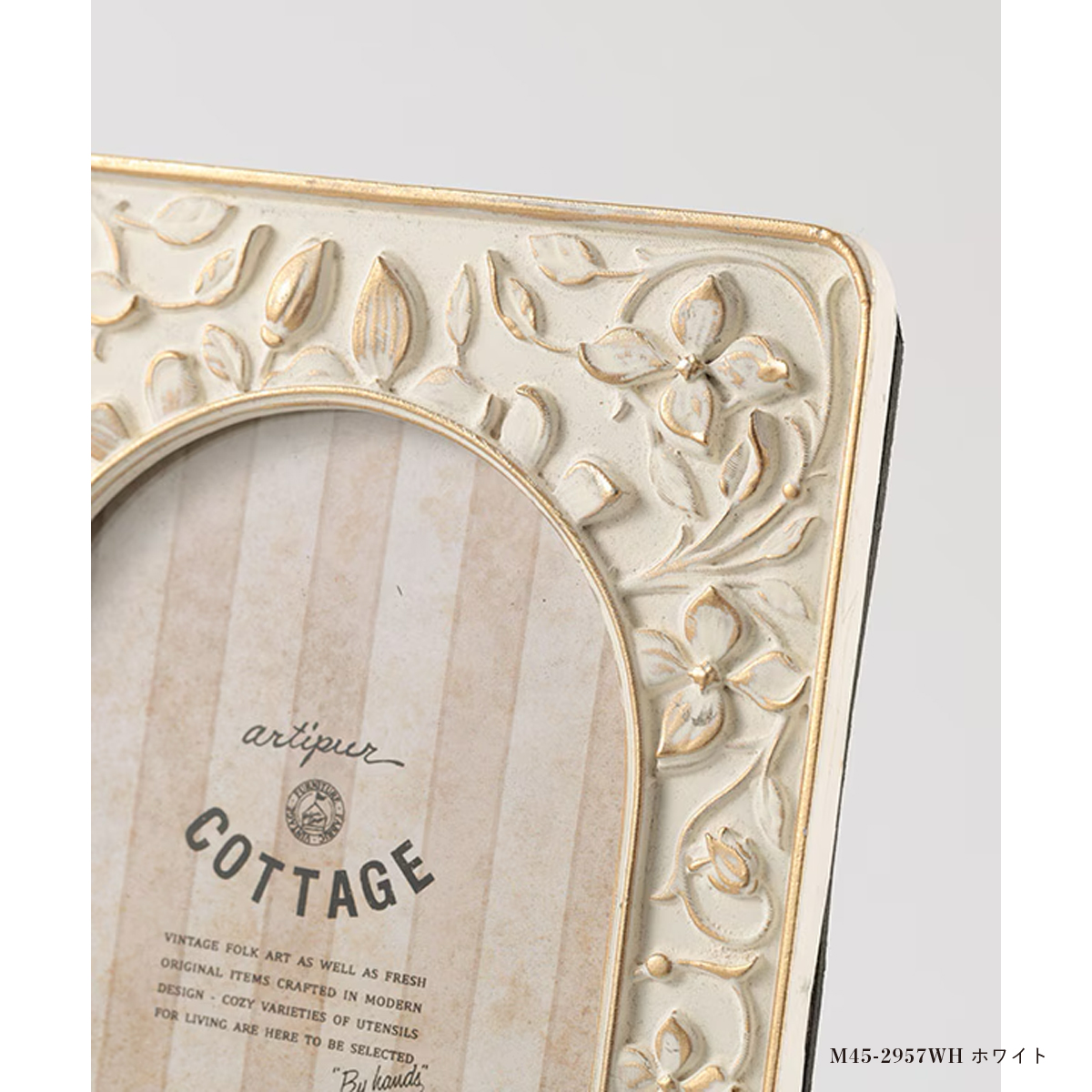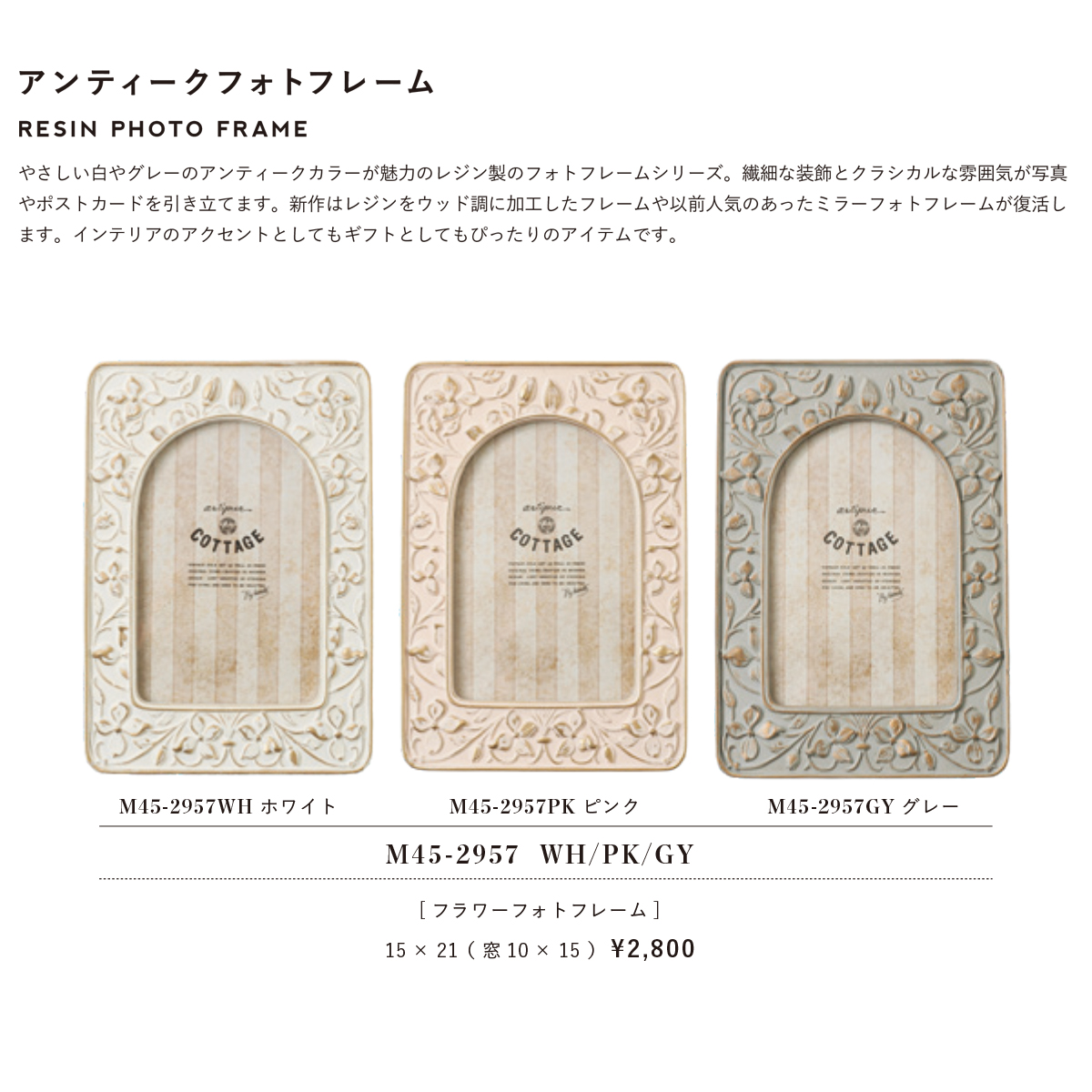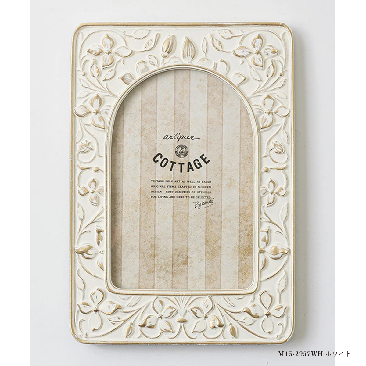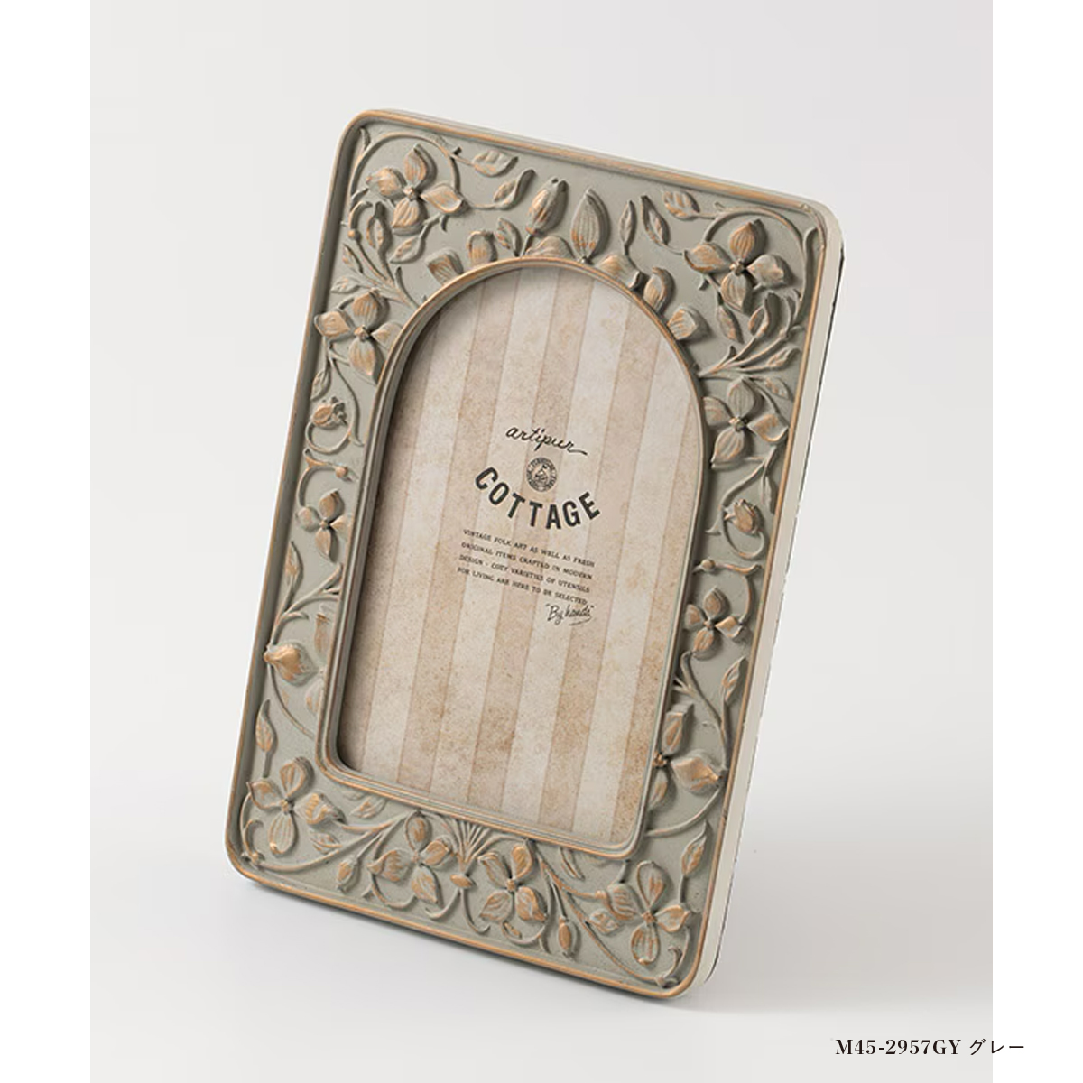 やさしい白やグレーのアンティークカラーが魅力のレジン製のフォトフレーム。