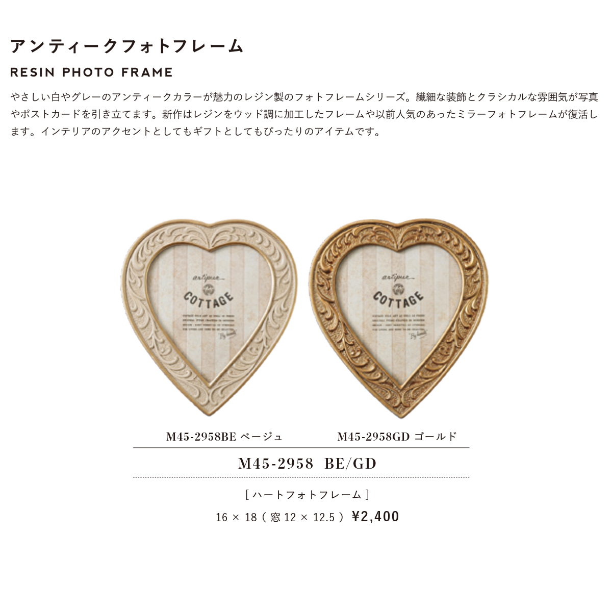 繊細な装飾を施したクラシカルなハート型が雰囲気抜群で写真やポストカードを引き立てます。