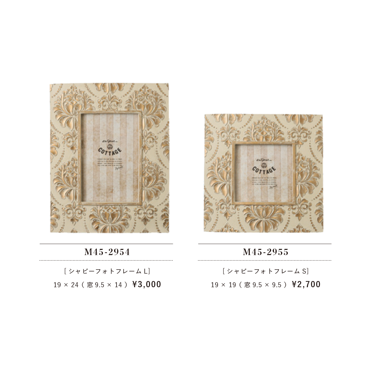 | サイズ | M45-2954:19 x 24 (窓9.5 x 14) M45-2955:19 x 19 (窓9.5 x 9.5) |