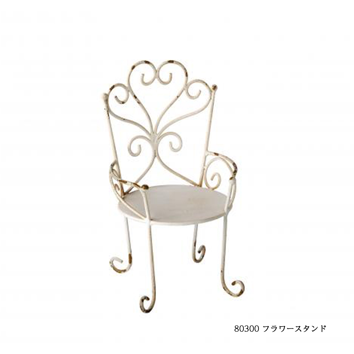 80300:アイアン製のチェア型フラワースタンドです。アンティーク調のデザインでインテリアやガーデンにおすすめです。