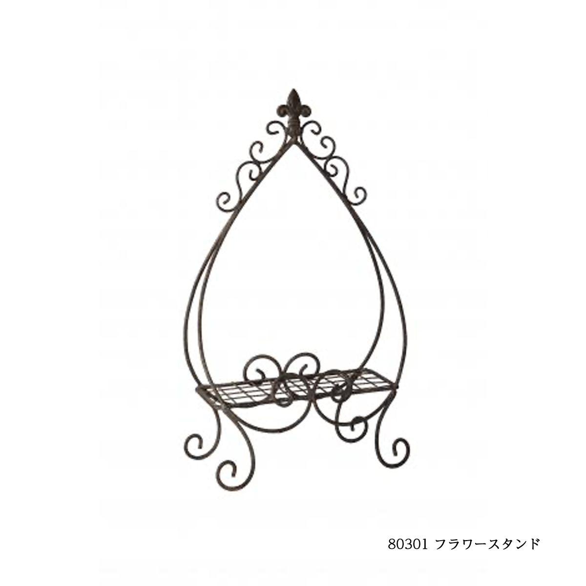 80301:アイアン製のフラワースタンドです。アンティーク調のデザインでインテリアやガーデンにおすすめです。