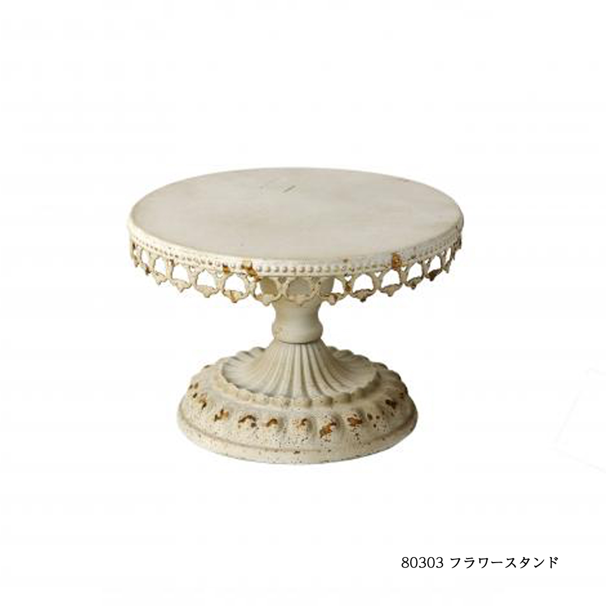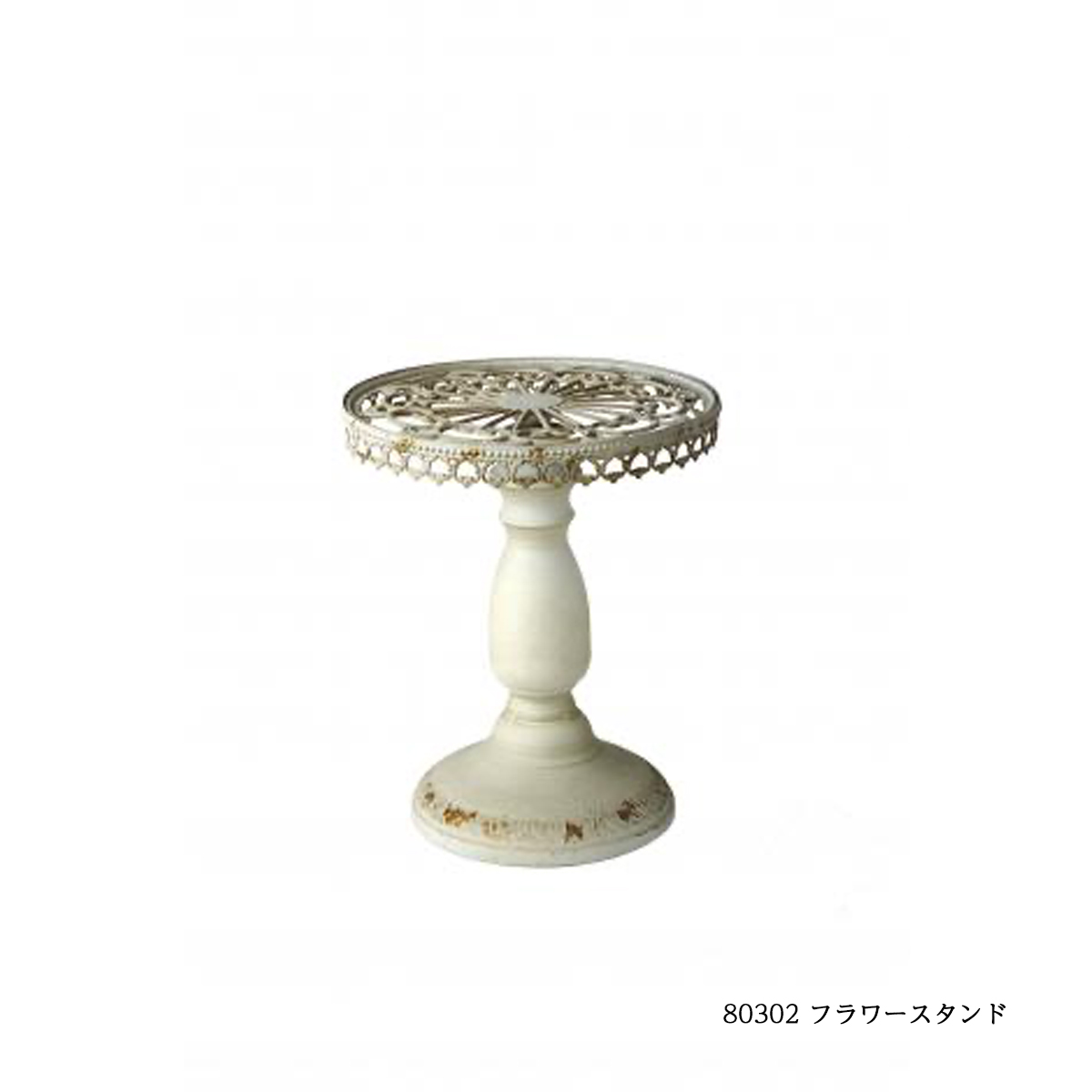 80302:アイアン製の台座型フラワースタンドです。アンティーク調のホワイトカラーでインテリアのアクセントになります。
