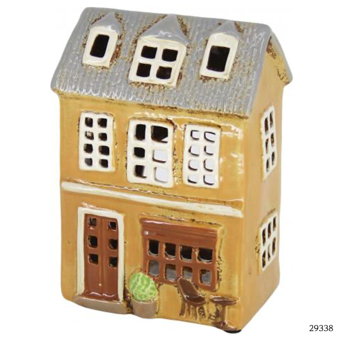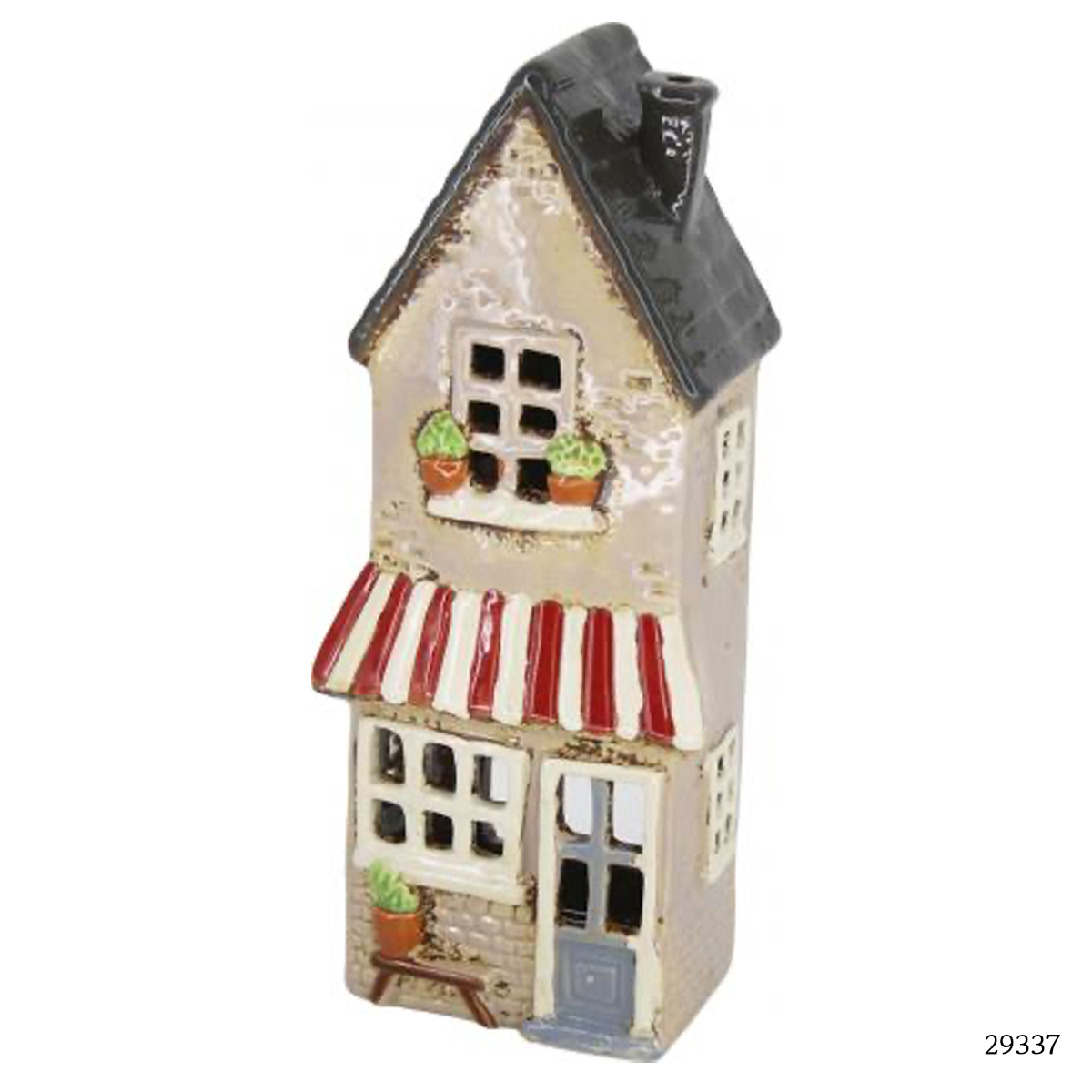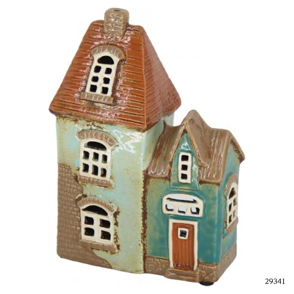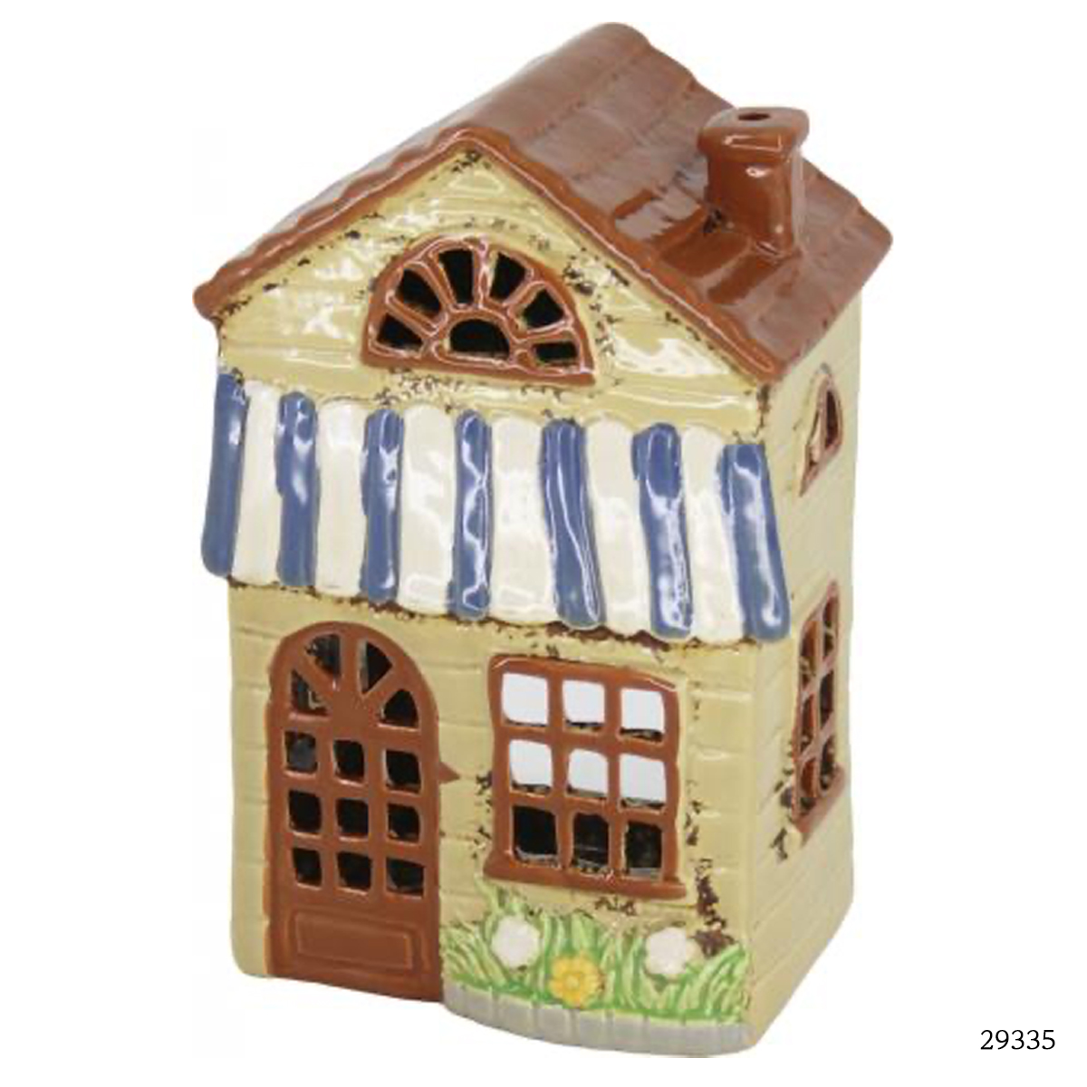 陶器製のキャンドルハウス型オブジェです。インテリアのアクセントやギフトにおすすめです。