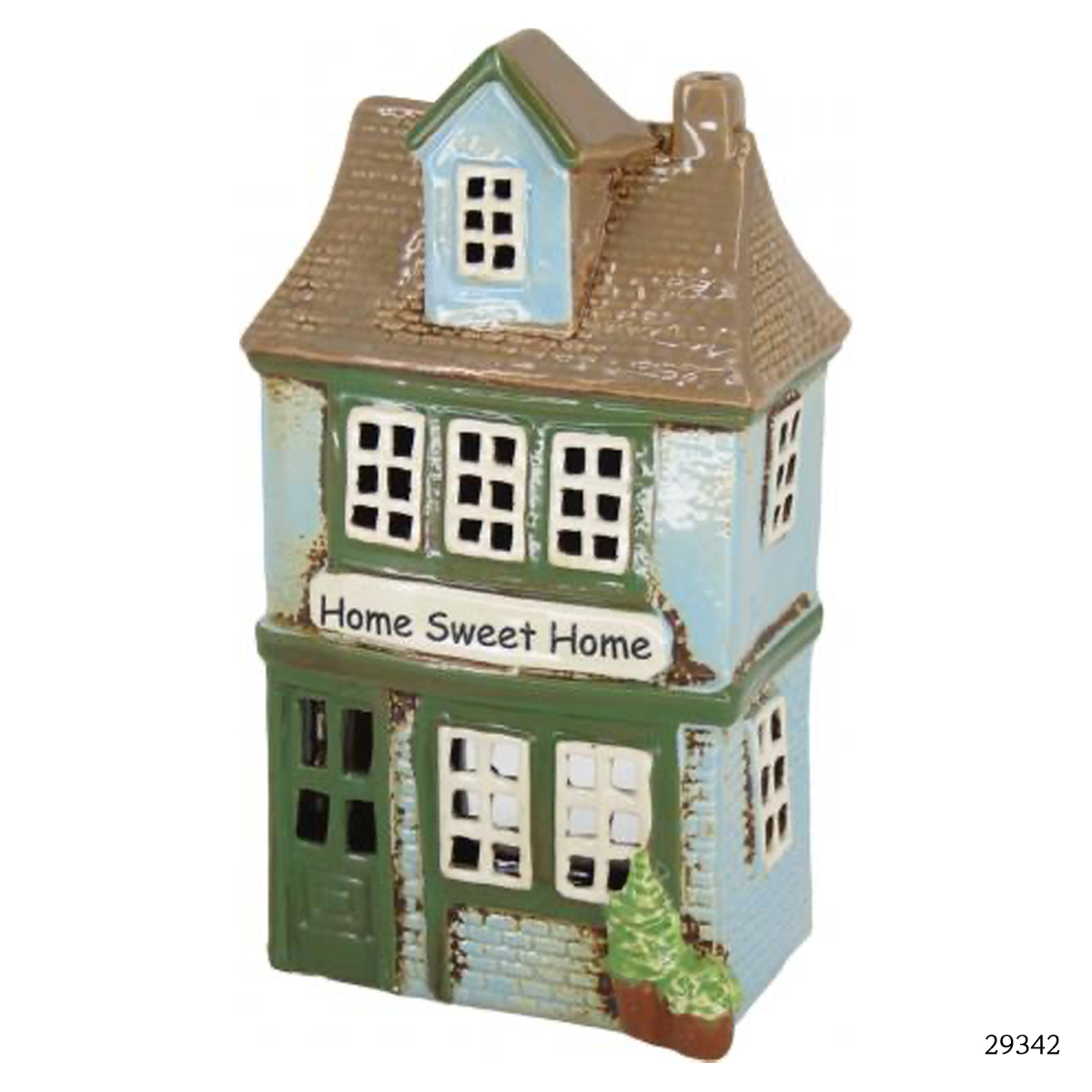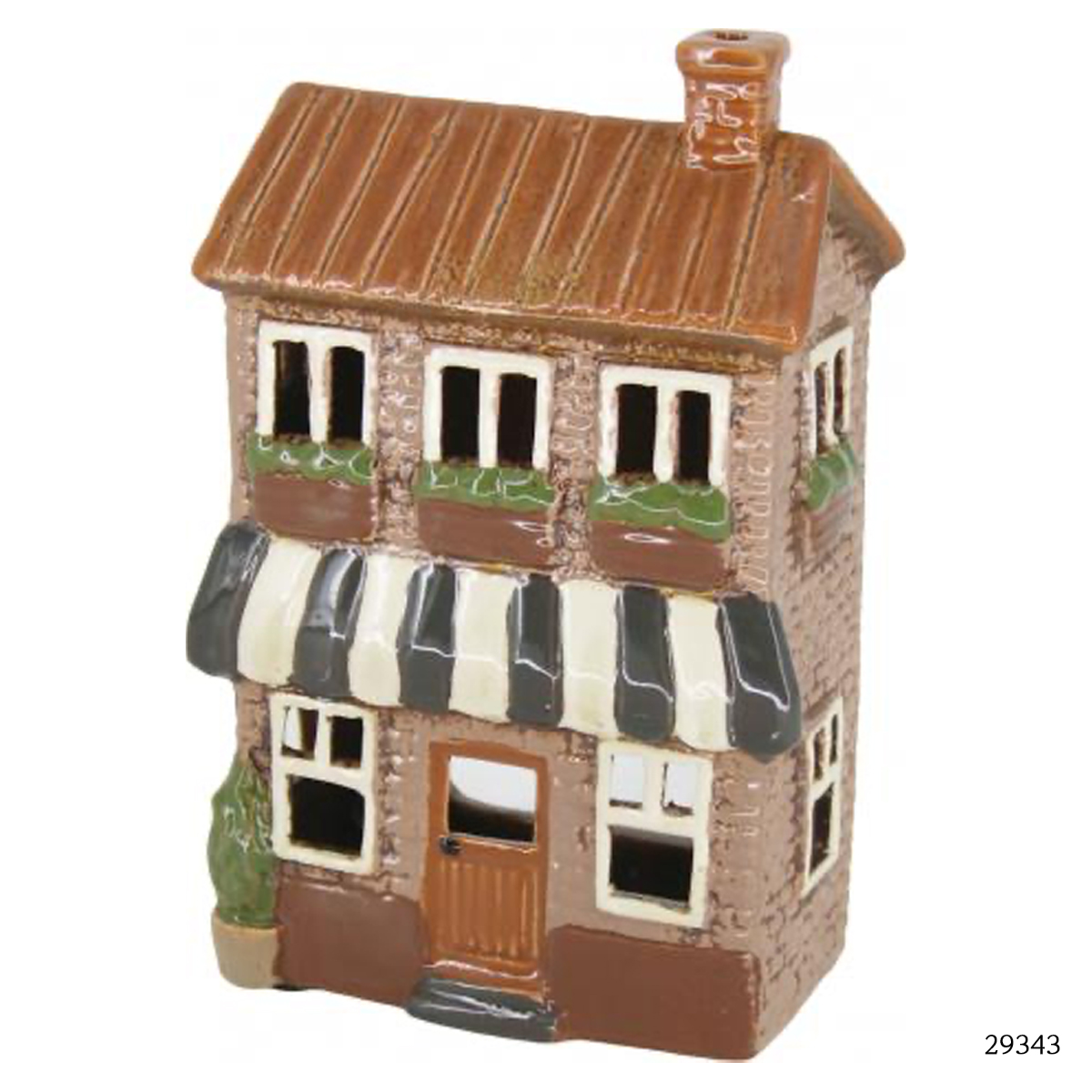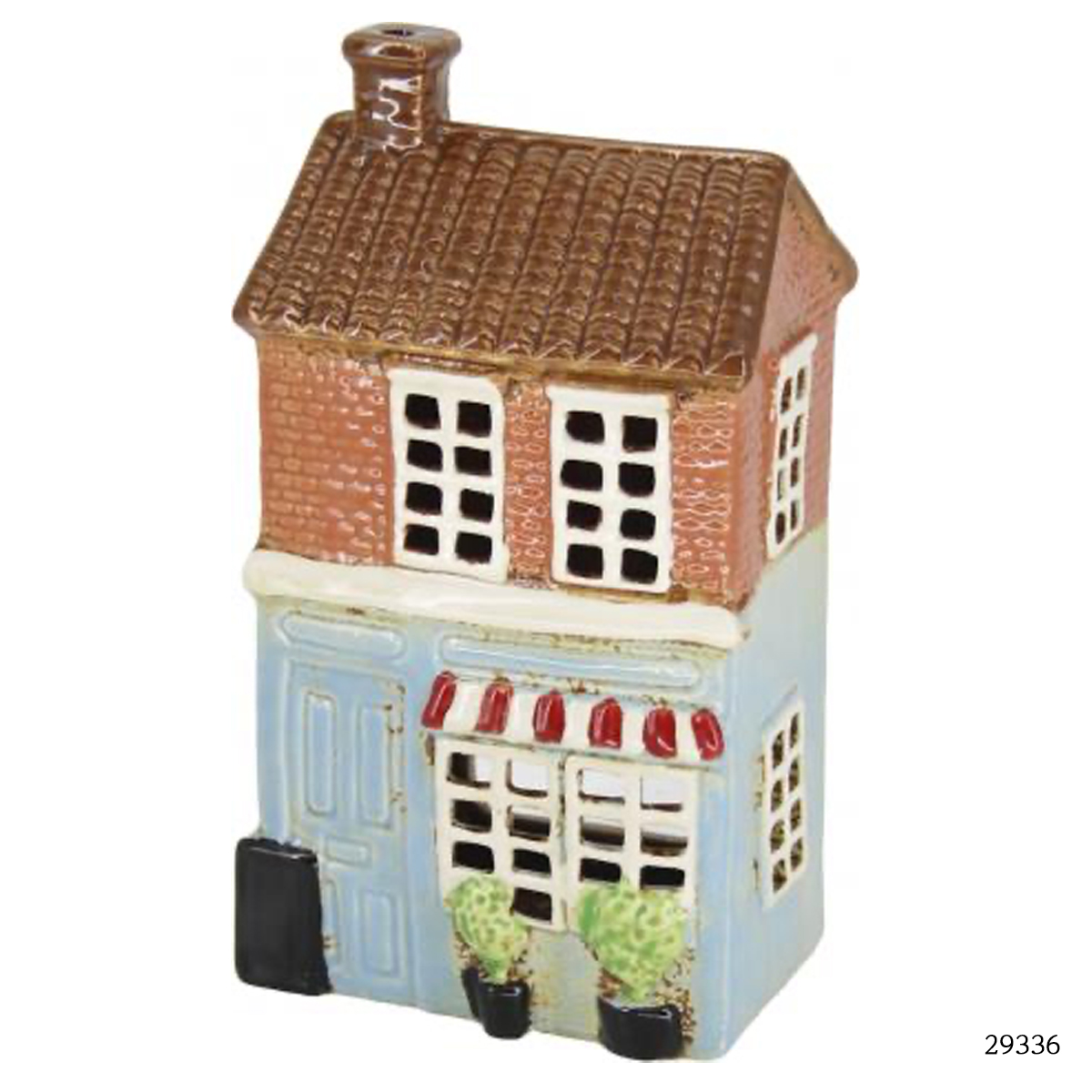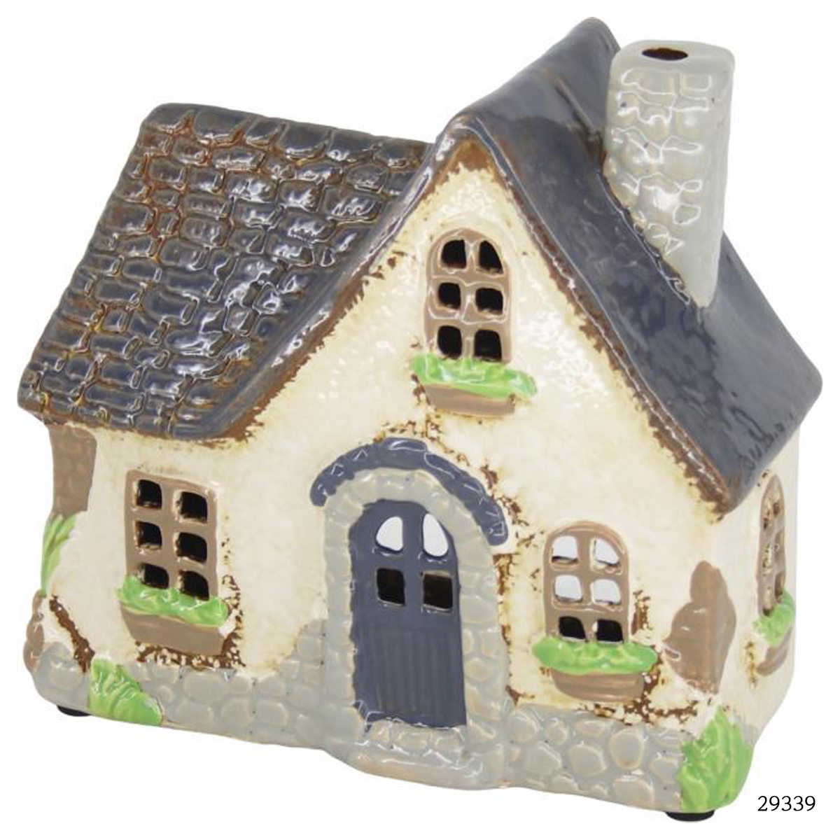 陶器製のキャンドルハウス型オブジェです。インテリアのアクセントやギフトにおすすめです。