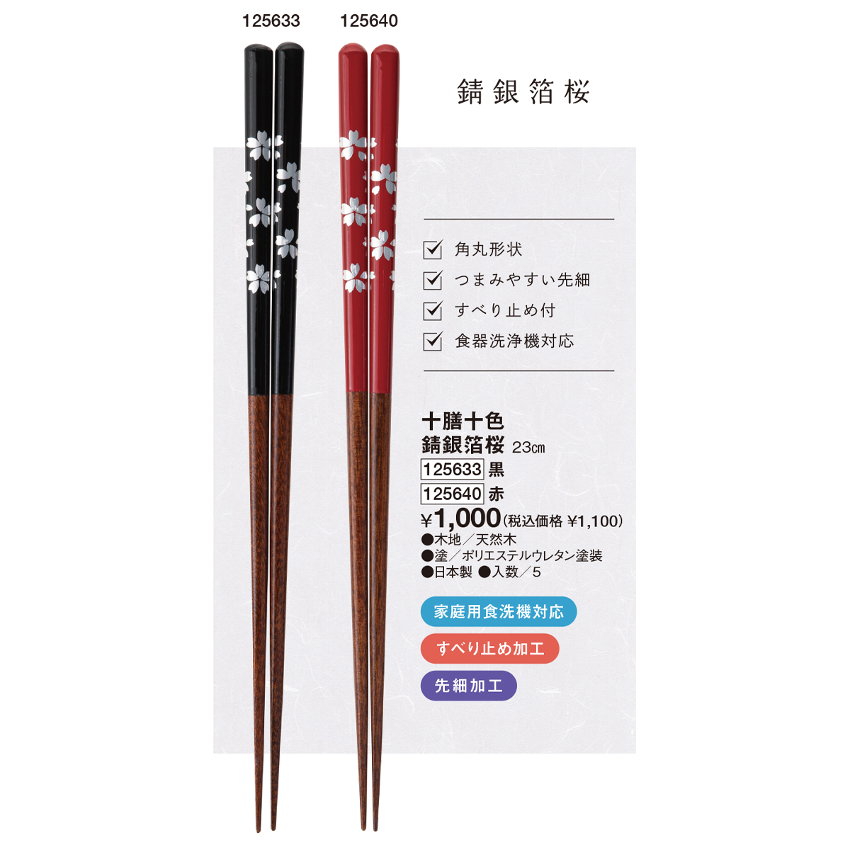 十膳十色 錆銀箔桜 黒 23cm