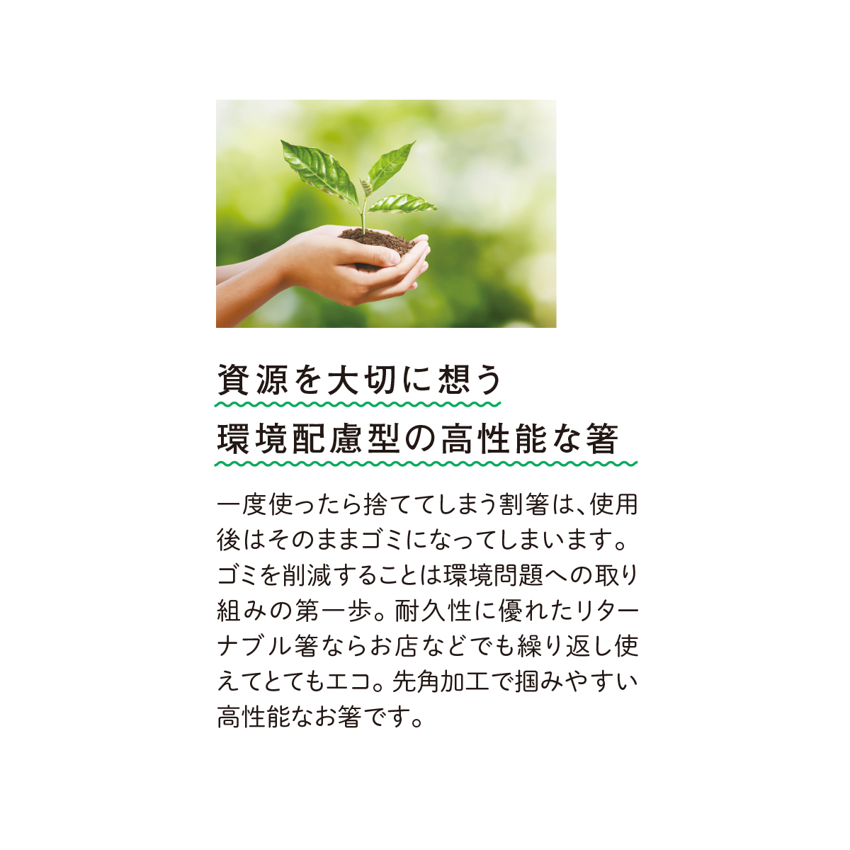 資源を大切に想う環境配慮型の高性能な箸
