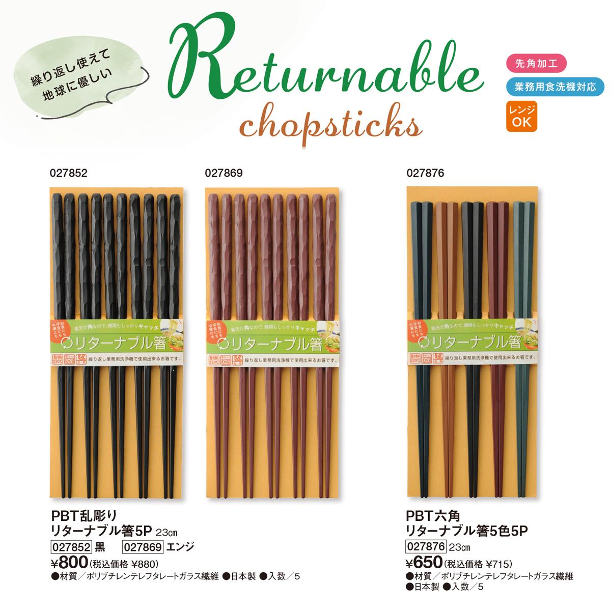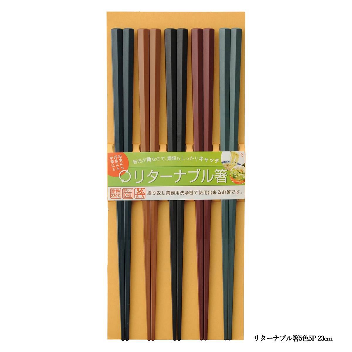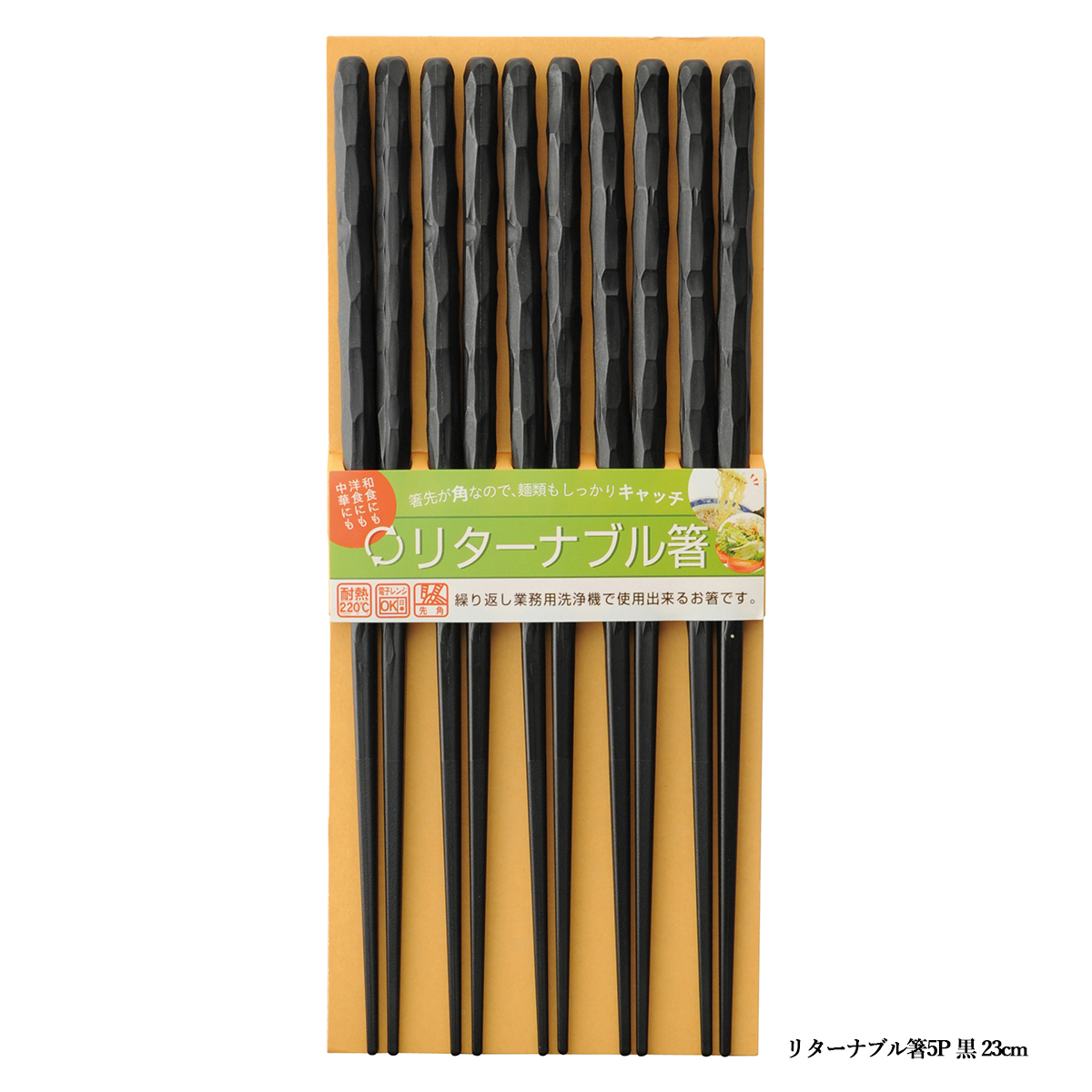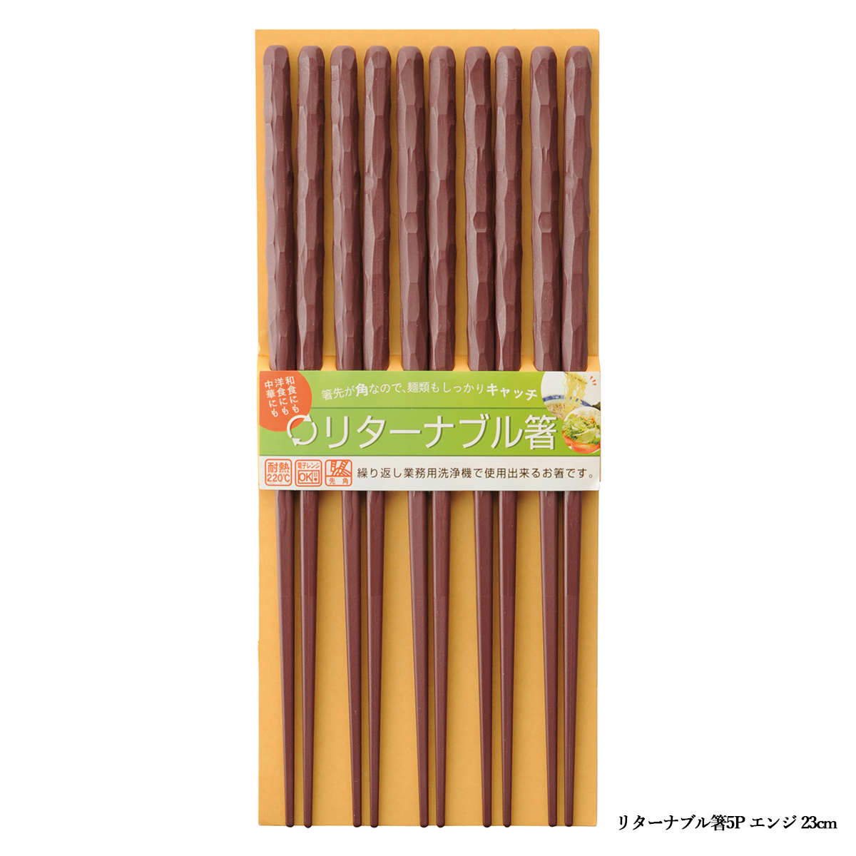 一度使ったら捨ててしまう割箸は、使用後はそのままゴミになってしまいます。ゴミを削減することは環境問題への取り組みの第一歩。耐久性に優れたリターナブル箸ならお店などでも繰り返し使えてとてもエコ。先角加工で掴みやすい高性能なお箸です。