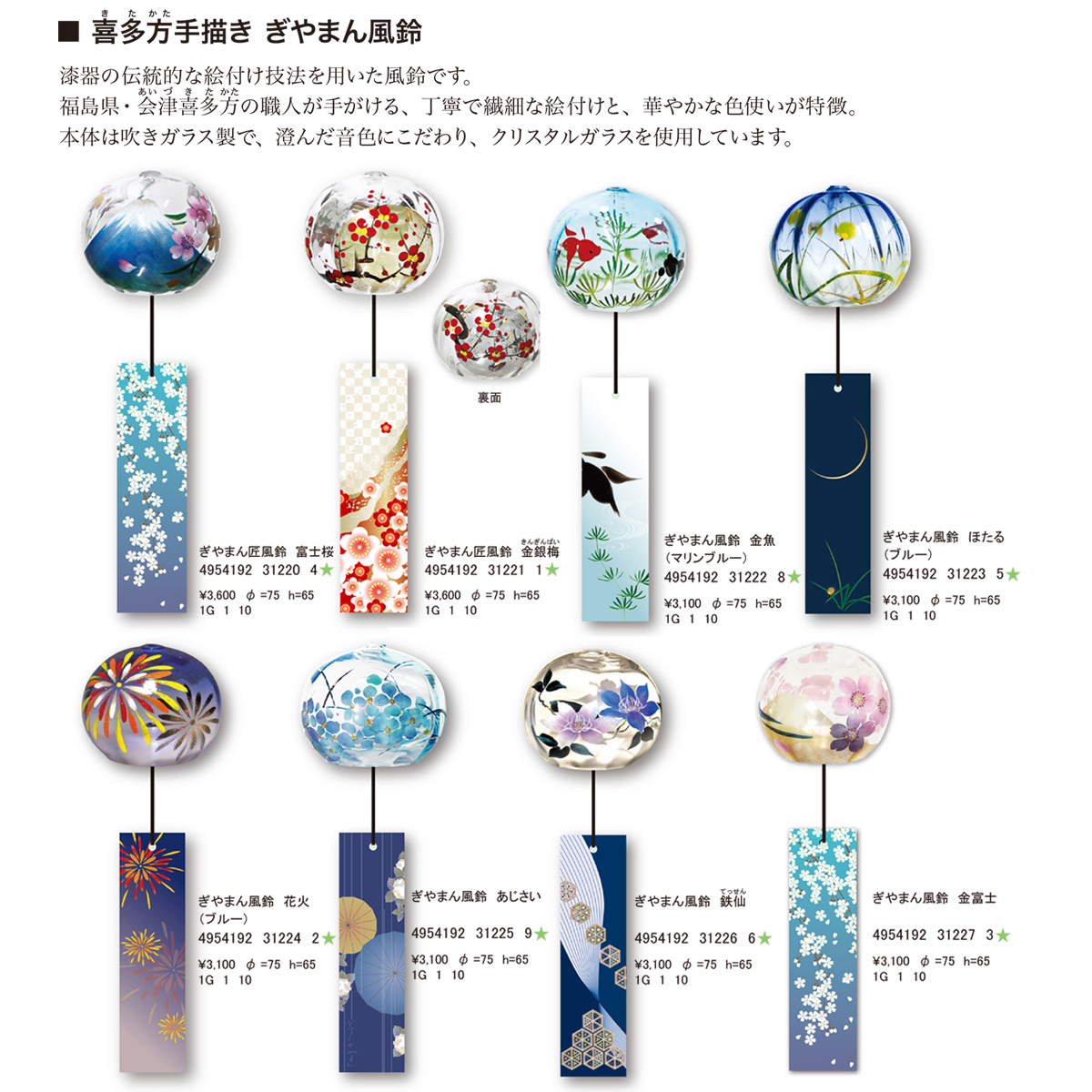 【日本製】喜多方手描き ぎやまん風鈴