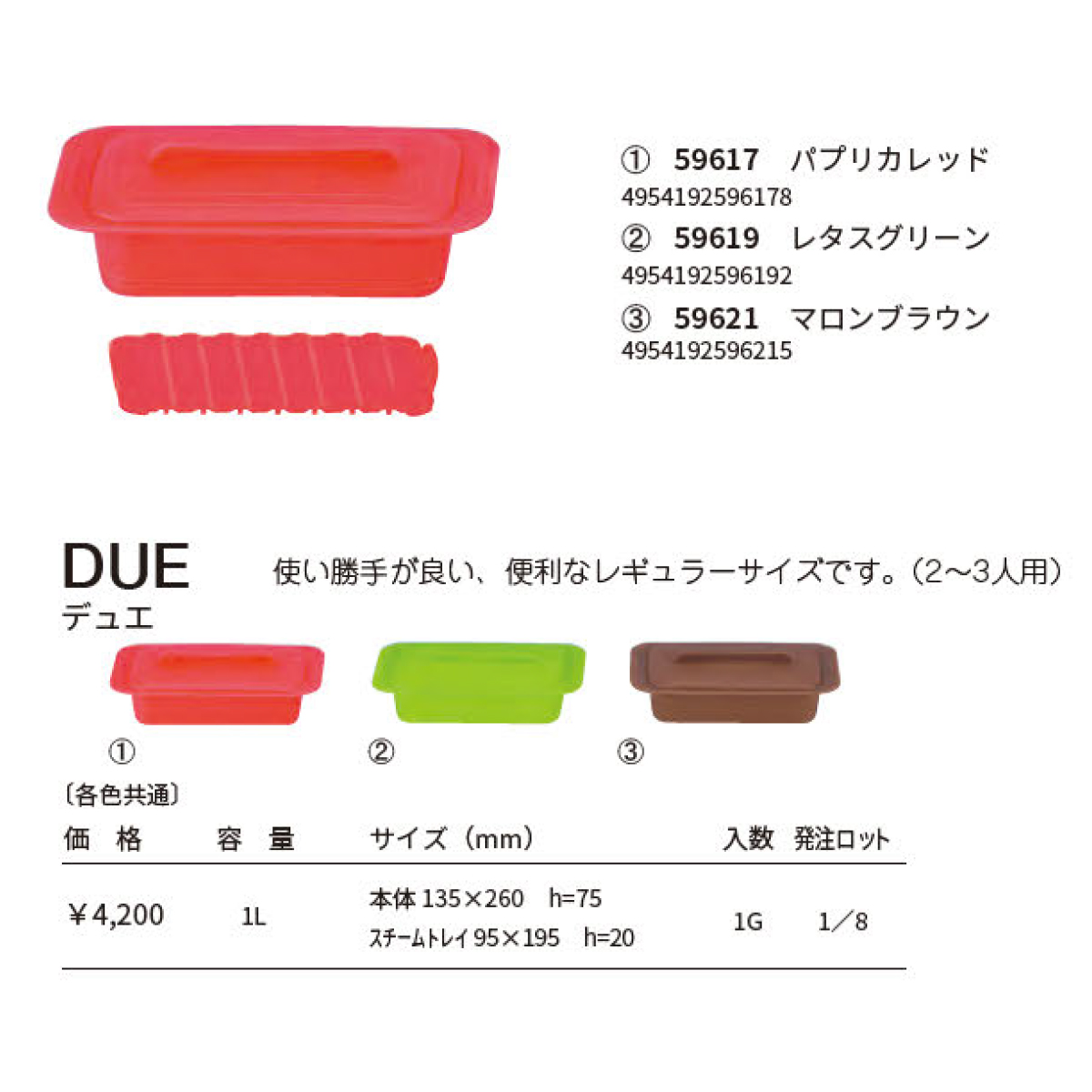 | サイズ | 本体:135×260 h=75 スチームトレイ:95×195 h=20 |
