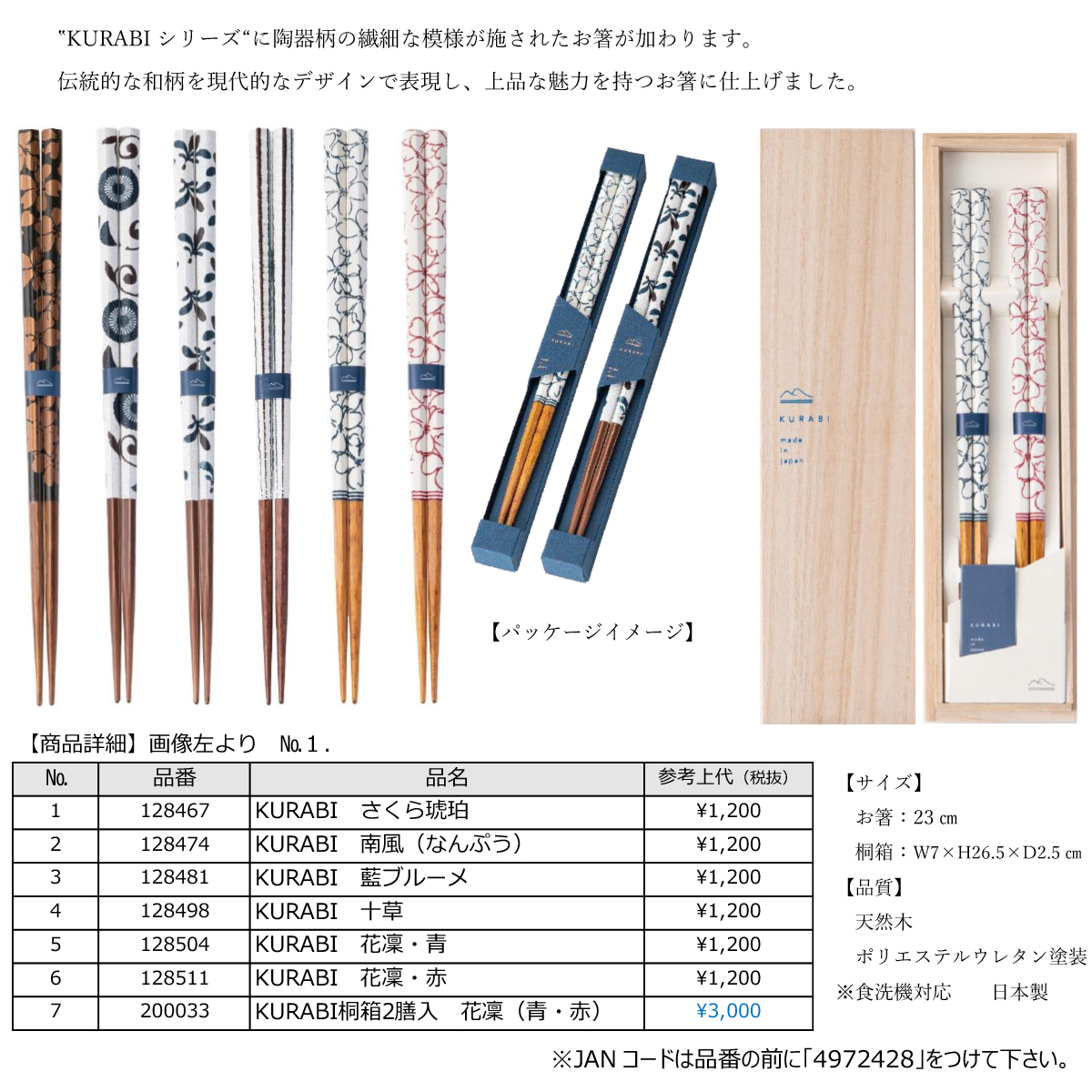 KURABIシリーズに陶器柄の繊細な模様が施されたお箸が加わります。伝統的な和柄を現代的なデザインで表現し、上品な魅力を持つお箸に仕上げました。