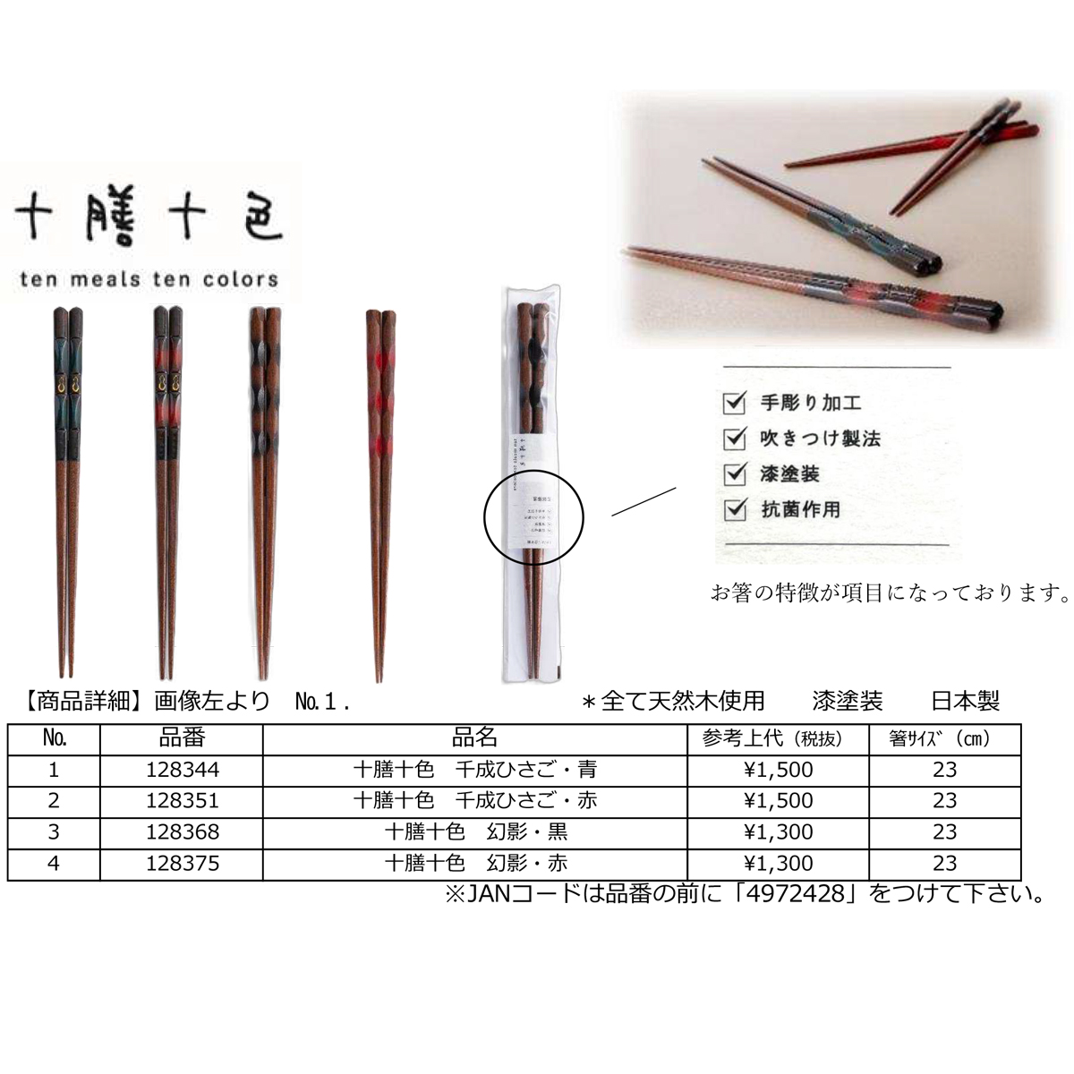 十膳十色 箸23cm 抗菌 和カトラリー