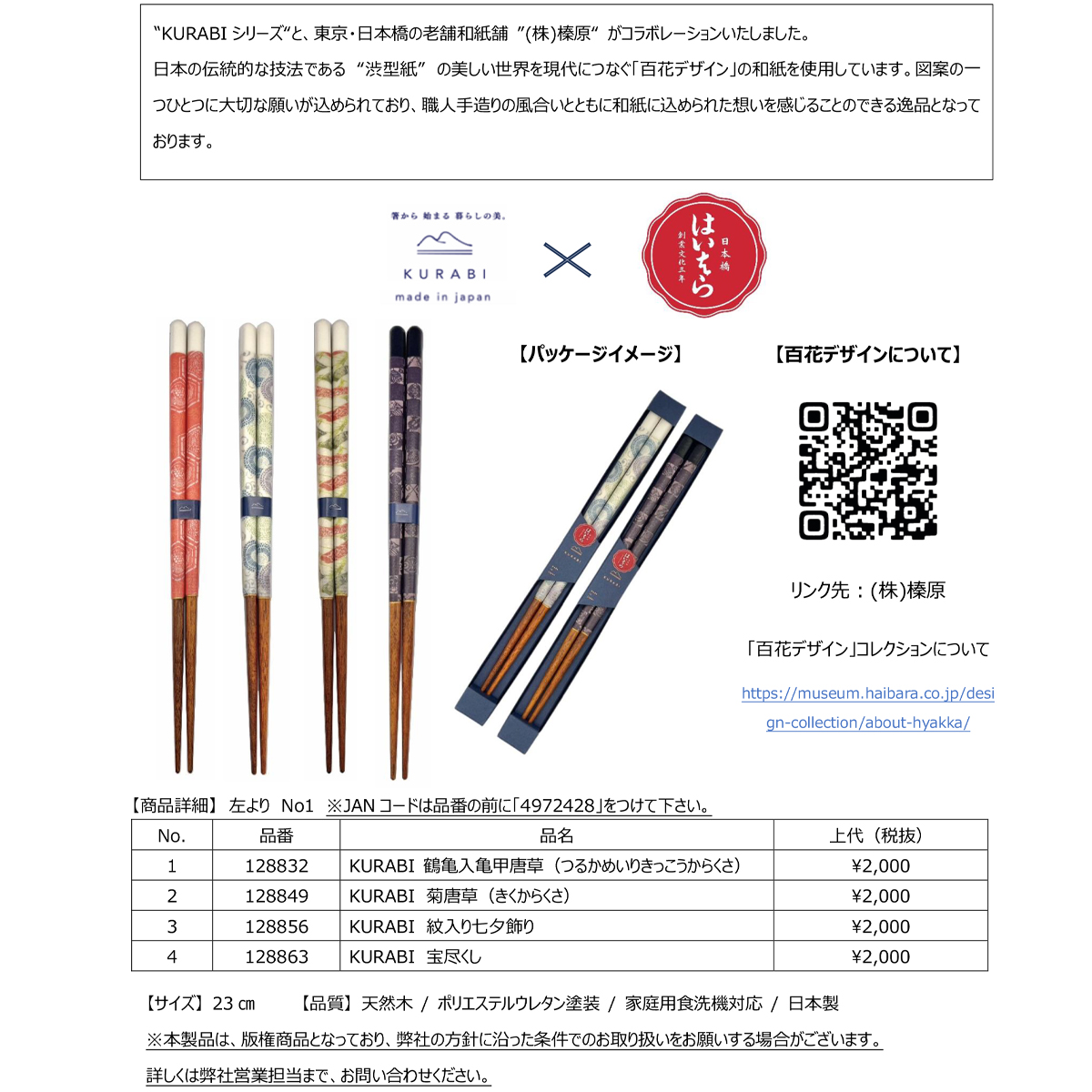 KURABIシリーズと、東京・日本橋の老舗和紙舗"(株)榛原"がコラボレーションいたしました。日本の伝統的な技法である"渋型紙"の美しい世界を現代につなぐ「百花デザイン」の和紙を使用しています。図案の一つひとつに大切な願いが込められており、職人手造りの風合いとともに和紙に込められた想いを感じることのできる逸品となっております。