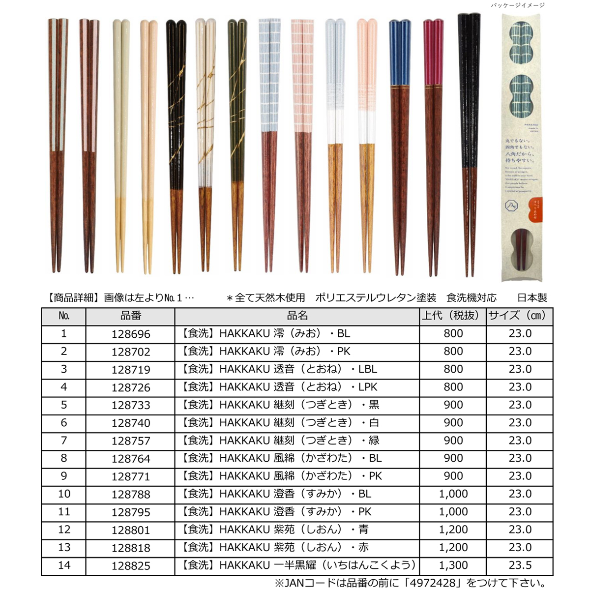HAKKAKU 箸23cm 食洗機対応 八角だから、持ちやすい