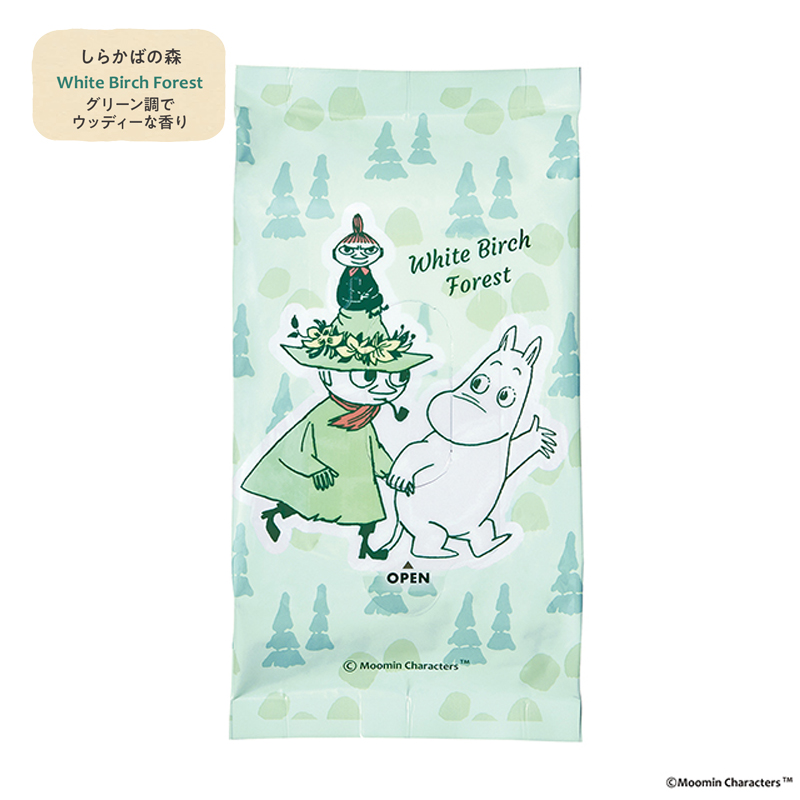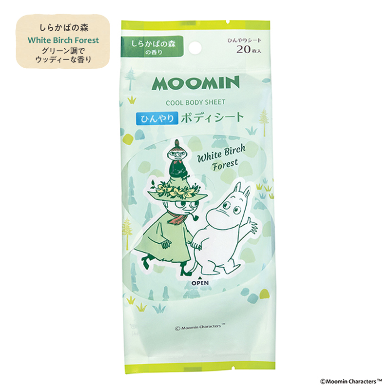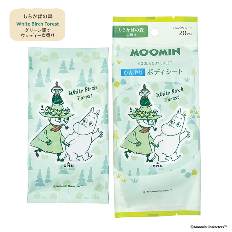 ムーミン ひんやりボディーシート しらかばの森:グリーン調でウッディーな香り