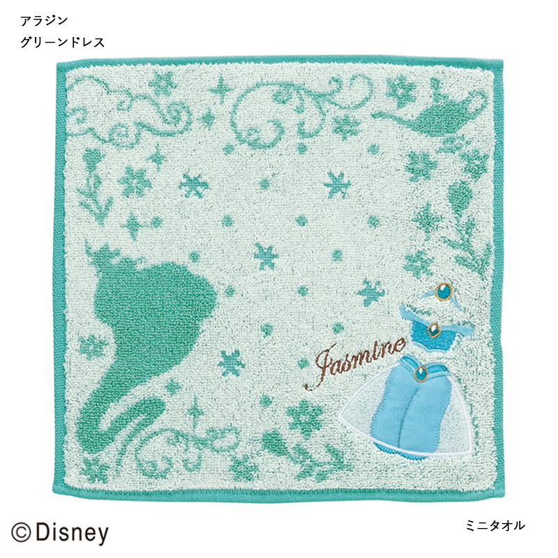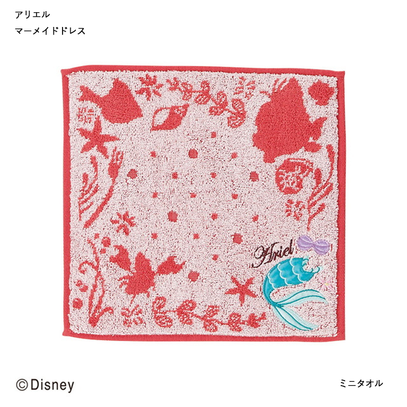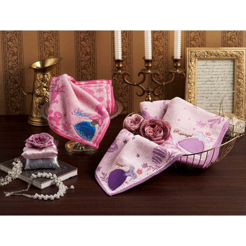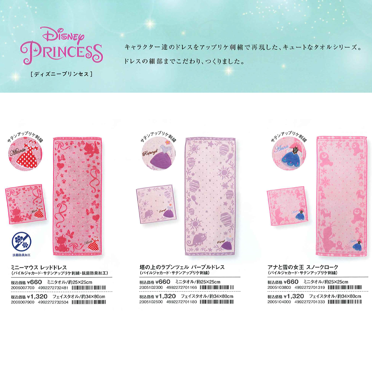 【Disney】ディズニープリンセス ドレス アップリケ刺繍 ミニタオル&フェイスタオル