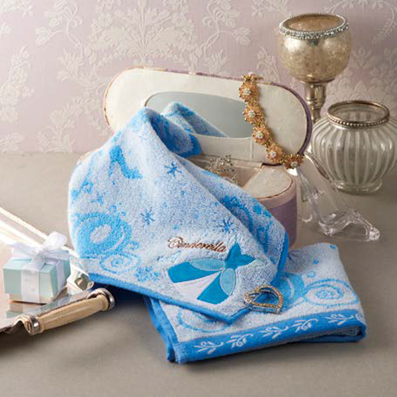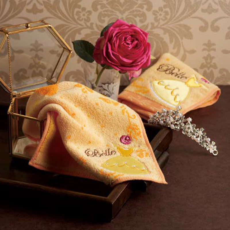 キャラクターたちのドレスをアップリケ刺繍で再現した、キュートなタオルシリーズ。