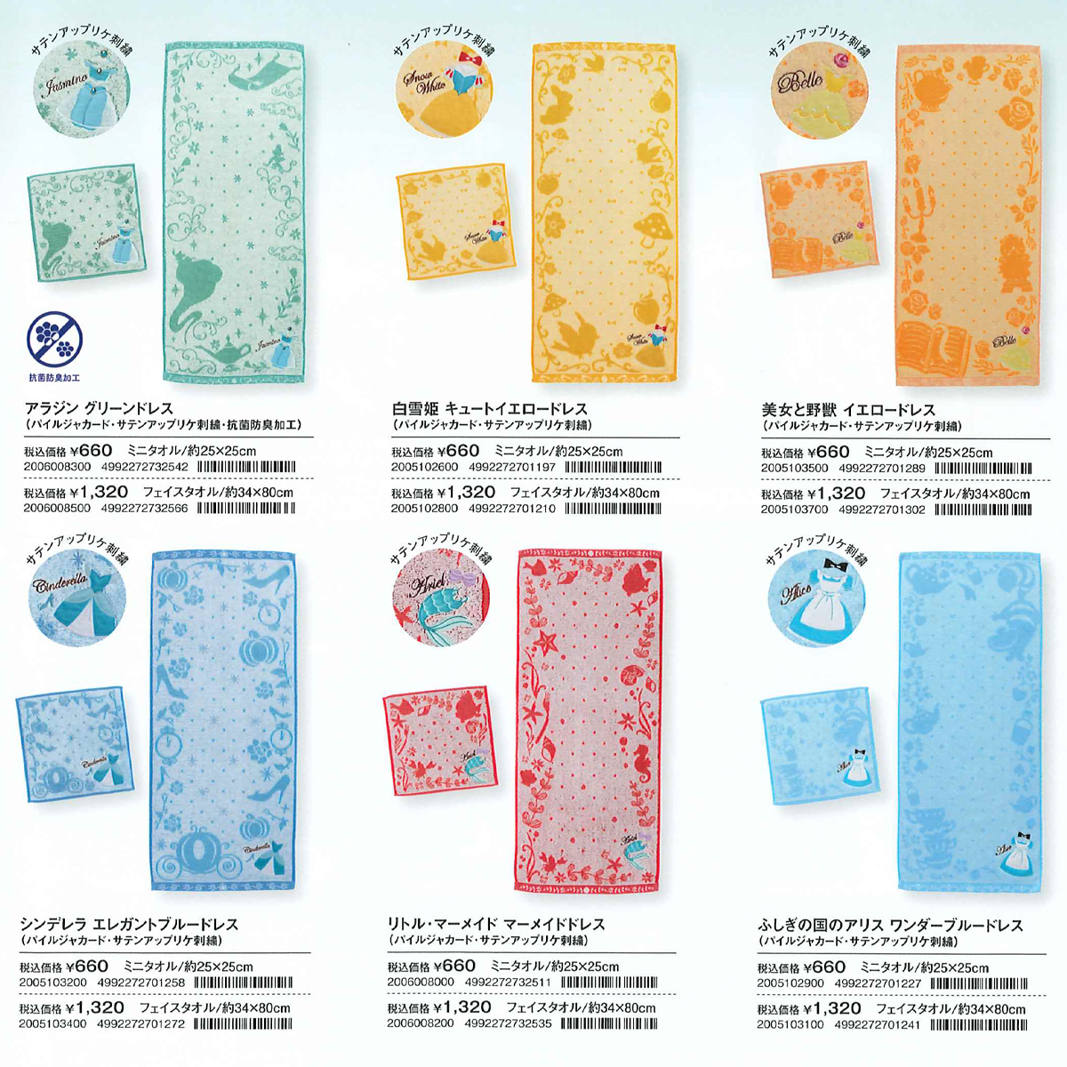 素材 | 綿100% 《仕様》 【ミニーマウス】パイルジャカード・サテンアップリケ刺繍・抗菌防臭加工 【塔の上のラプンツェル】パイルジャカード・サテンアップリケ刺繍 【アナと雪の女王】パイルジャカード・サテンアップリケ刺繍 【白雪姫】パイルジャカード・サテンアップリケ刺繍 【美女と野獣】パイルジャカード・サテンアップリケ刺繍 【シンデレラ】パイルジャカード・サテンアップリケ刺繍 【アリエル】パイルジャカード・サテンアップリケ刺繍・抗菌防臭加工 【ふしぎの国のアリス】パイルジャカード・サテンアップリケ刺繍 |